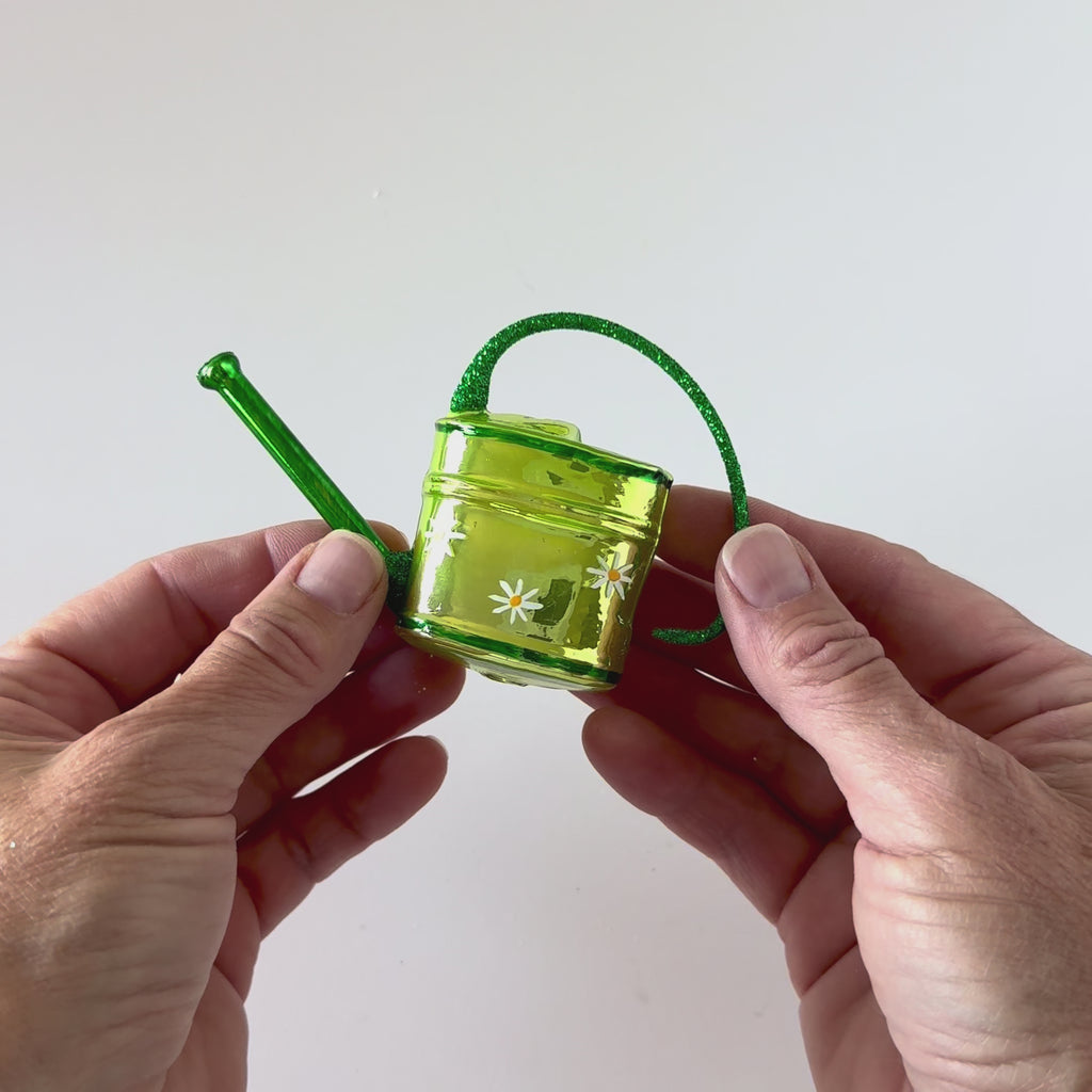 Polish Blown Glass Ornament – Green Watering Can with Flowers