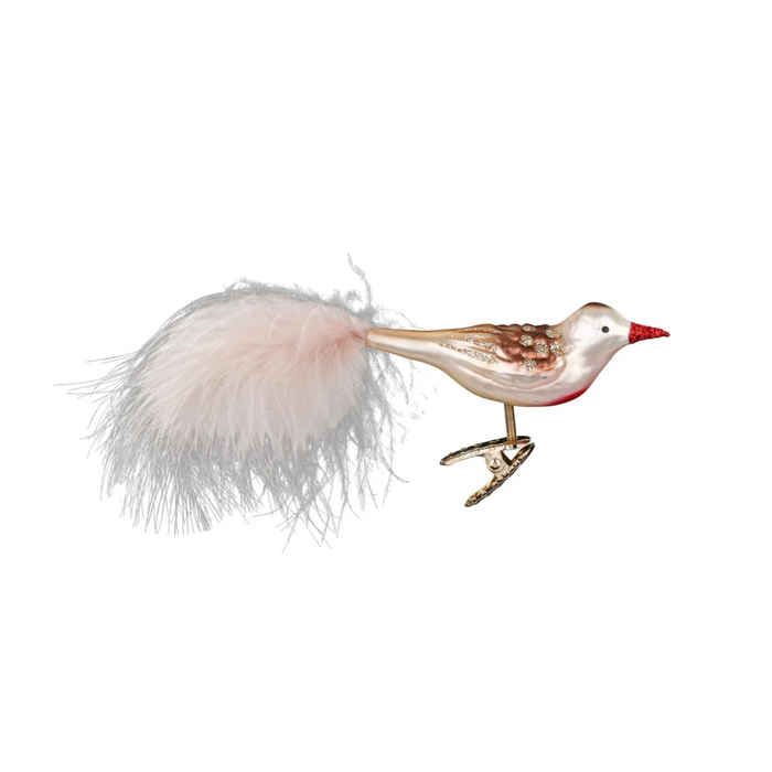Inge-Glas Glass Ornament - Red Finch, Clip-On Bird