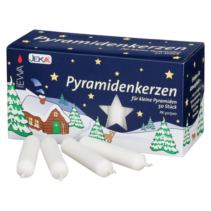 Box of 50 candles to fit most German wooden Christmas Pyramids.