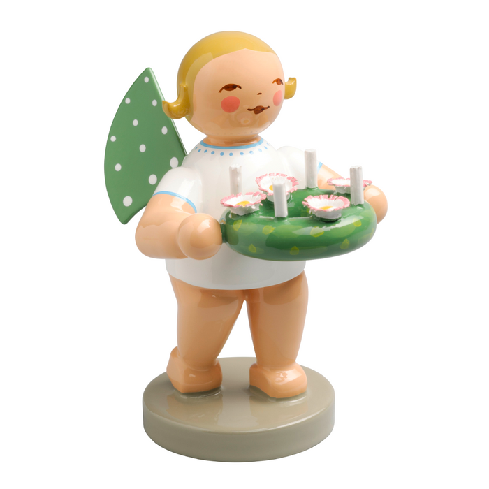 This Wendt & Kühn Angel beautifully captures the spirit of birthday celebrations with a hand-painted Waldorf-inspired wreath in its outstretched hand.